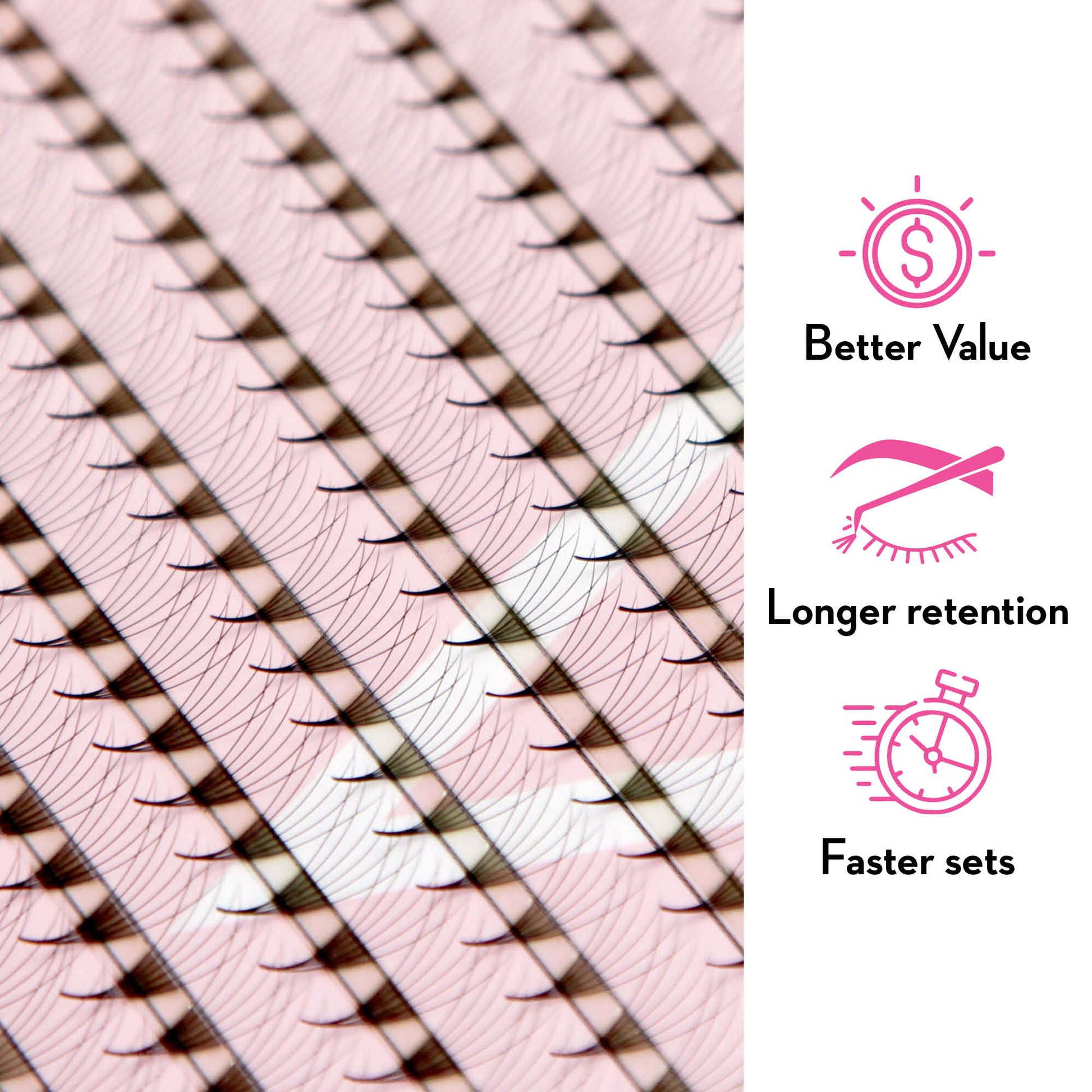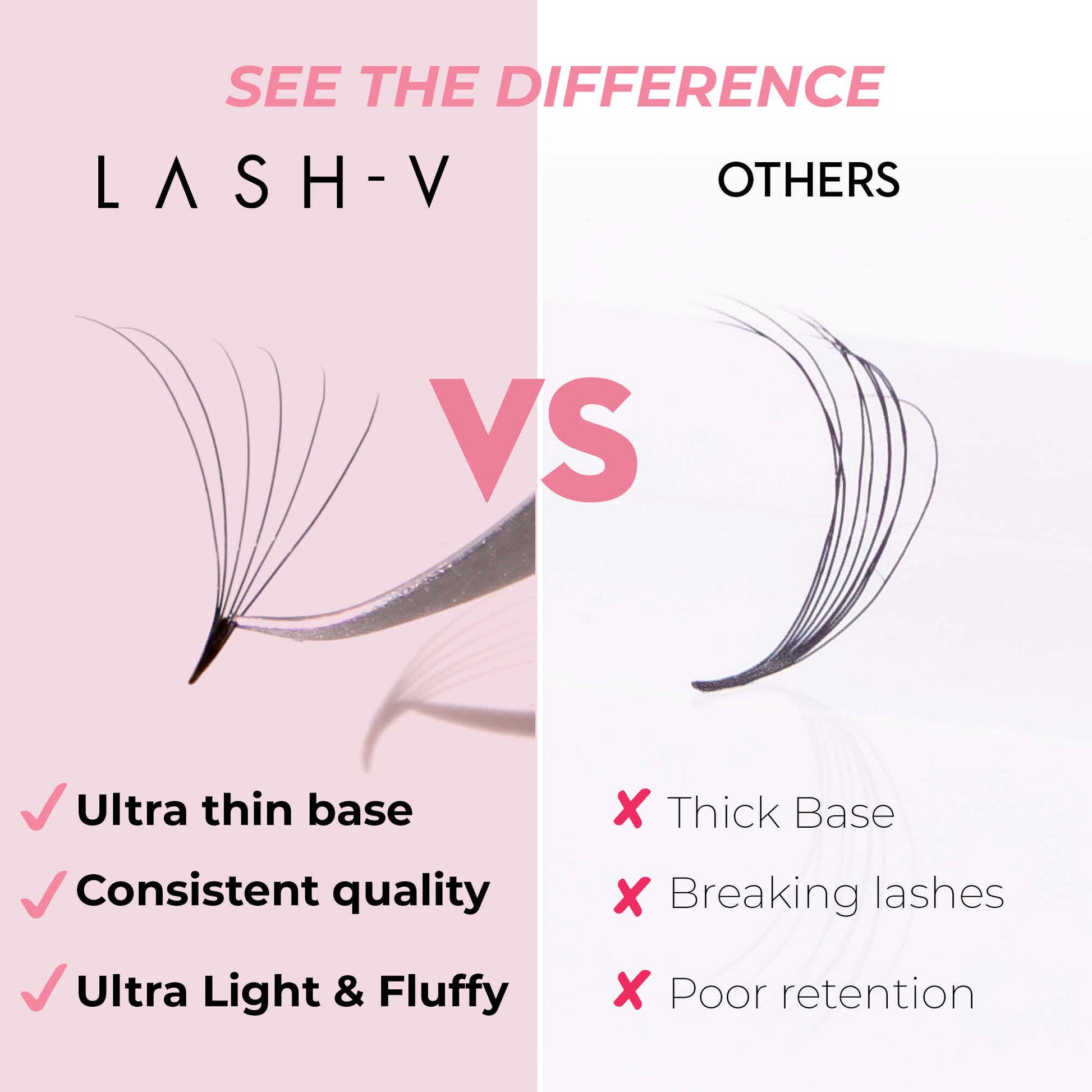 All our Lash V premade lash fans are handmade just like individual lash fans. Our premade volume eyelash extensions are made with PBT material and have Platinum silk blended throughout showcasing the highest quality. So, the softness of Lash V promade (premade fans) will leave your customers coming back for more! So, it’s time to see why over 19,000 lash artists use Lash V as their trusted lash extensions supplier!