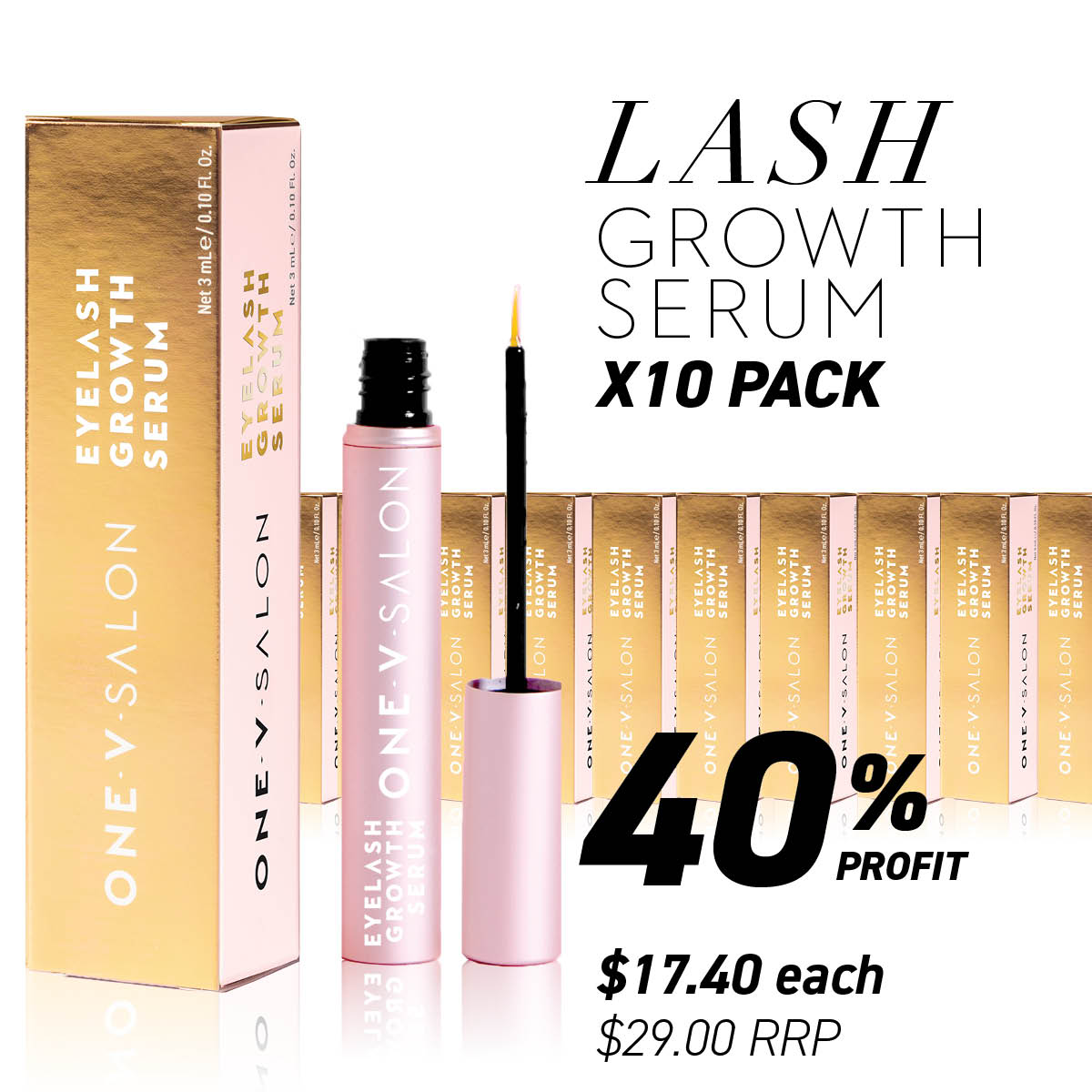 One V Salon are so proud of this latest lash growth formula, that we offer a lash serum money-back guarantee if any of your clients have not seen results after 6 weeks.