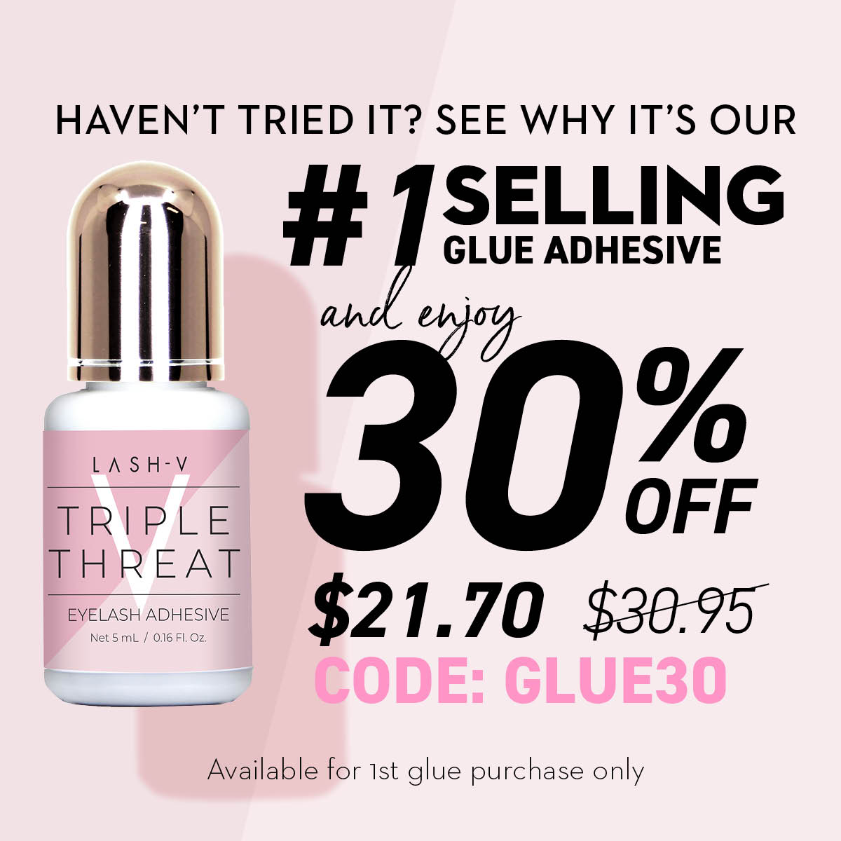 Get ready to lash your fastest set ever with Lash V Triple Threat! Triple Threat glue adhesive is the latest in German technology creating the first ever glue specifically formulated for promade fans and premade volume fans. Perfect to use with all Lash V lashes: promade fans, long stem and short stem pro.